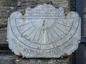 He just about manages to find Liskeard and I force the other Braunds to admire the sundial over the church porch – carved by my 6 x great-grandfather, Samuel Braund, in 1779.