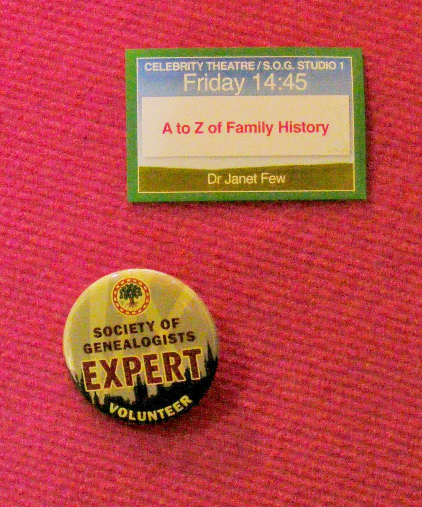 Tickets for my talk have sold out by 10am, unfortunately my voice has given out too. Studio 3 involves competing with a great deal of background noise and a PA system that means you can’t actually hear how loud you are speaking. Nonetheless I manage to croak my way through my ‘Putting Your Ancestors in their Place’ talk and appear to have won some converts to the excitements of one place studies. I just hope that people don’t think my voice always sounds like a strangled frog. In the general enthusiasm I mange to pour a cup of water over something that looks suspiciously like some vital electrical connection. That would be because it was a vital electrical connection – not a good move but I seem to avoid electrocution.