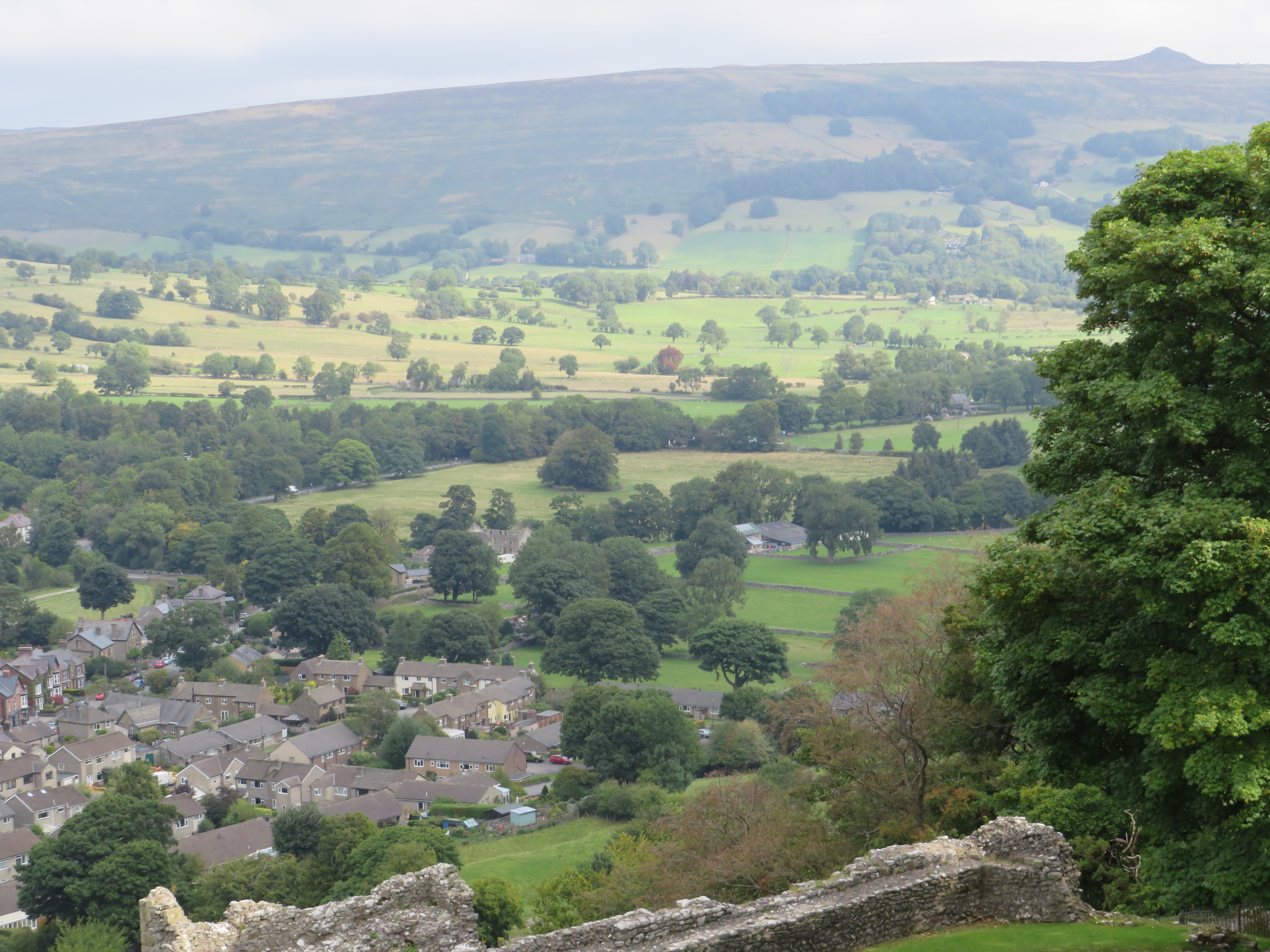 The next day we drove to Hope Valley and along Winnats Pass, with its impressive views across to Mam Tor, the site of a Hill Fort. The Hope Valley is the boundary between the millstone grit of the ‘Dark Peak’ and the differing geology of the ‘White Peak’, an area of carboniferous limestone, with its elaborate cave system. Our destination was Castleton and Peveril Castle, one of many castles established after the conquest in the Forest of the Peak to establish Norman control. Originally called the Castle of the High Peak, the castle was later named for William Peveril, an early keeper of the royal forest. The castle’s purpose was more administrative than defensive, being a base for the Keepers of the Forest of the Peak from the eleventh to sixteenth centuries. Their role was to ensure that the punitive Forest Laws were adhered to; fines were paid and rents were collected. The value of the area to the crown lay in its use as a royal hunting ground and also the local lead and silver mines. Castleton grew up in the late twelfth century, its houses and mills providing an income for the castle’s estate. It was a stop on the packhorse route.