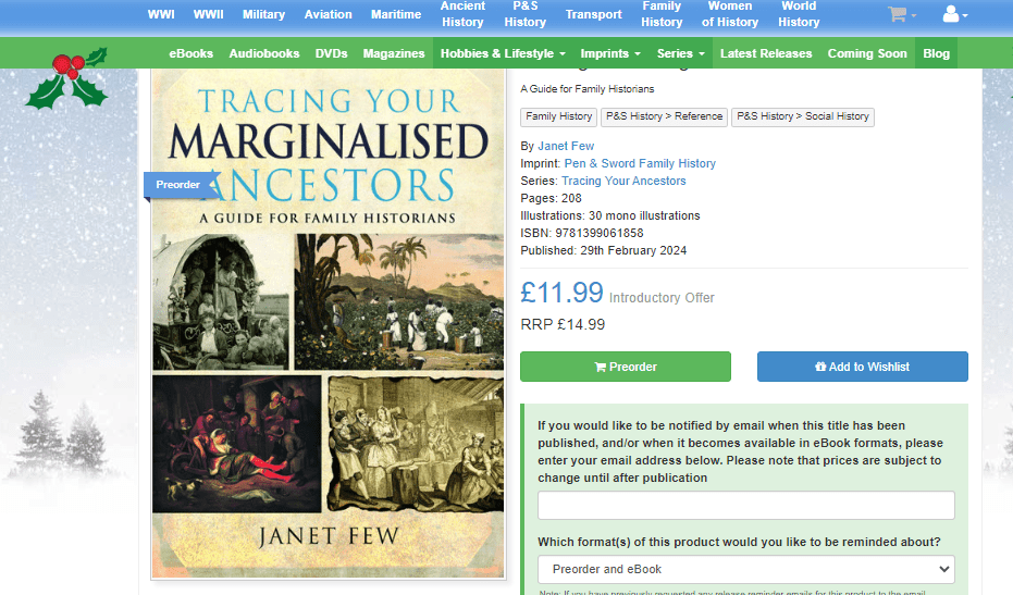 My fascination for aspects of the past that are not exactly filled with sweetness and light, led me to give talks on Forgotten Ancestors, or Ancestors on the Margins, those who are often discriminated against or stigmatised by society and forgotten by history. This led to me being asked to write an article for Family Tree Magazine and subsequently, I was approached by Pen and Sword to write a book, helping others to trace their ancestors on the margins. This all seems like a very long time ago now but I had great fun writing about how to trace the criminals, the illegitimate, the poor, the prostitutes, the witches and many more on you family tree. I tried to provide plenty of social historical context and each chapter finishes with a case study. Finally, the book is now in the late stages of gestation. Publication date is 29 February but pre-orders, at a reduced price, are already available here.