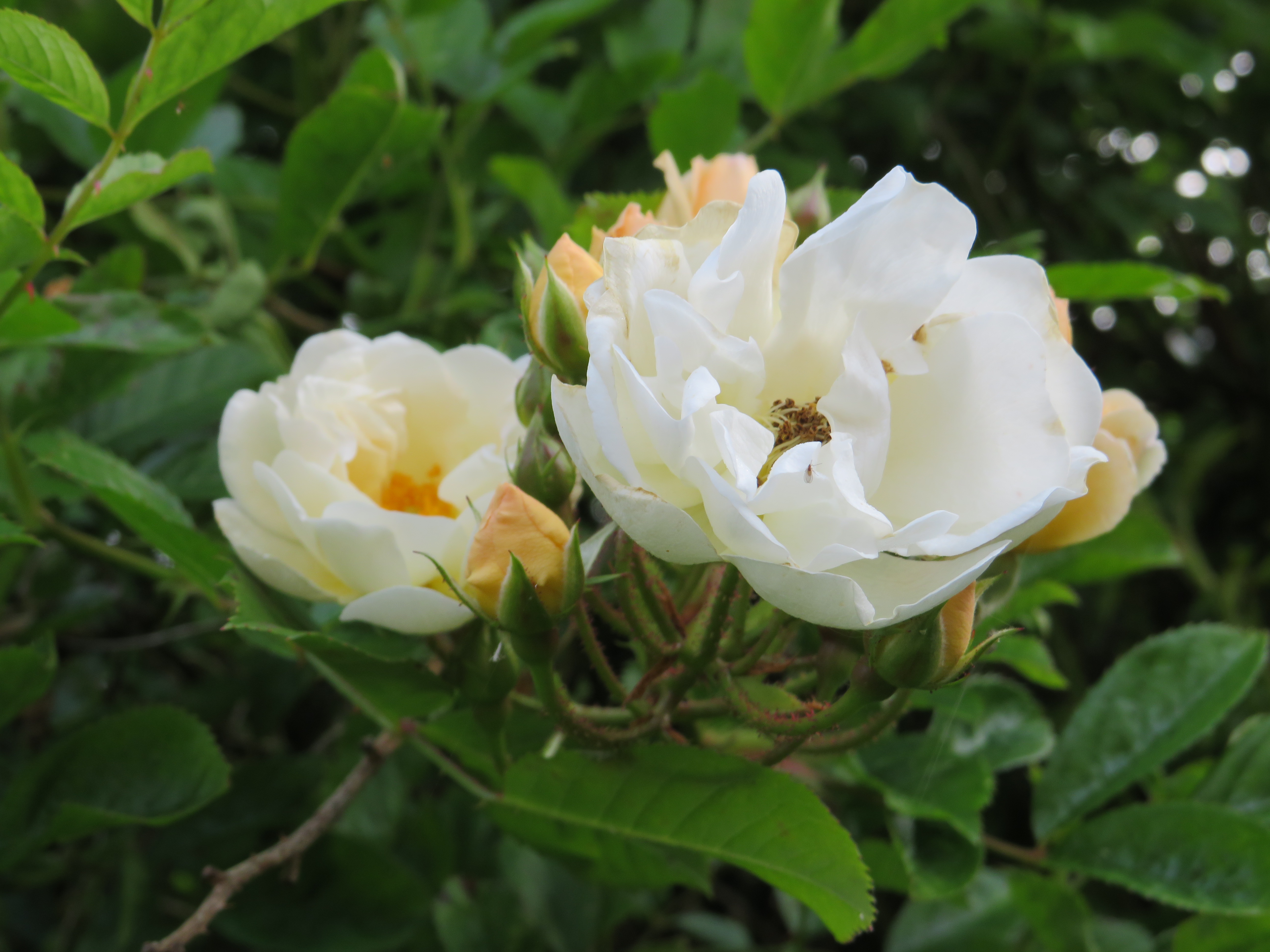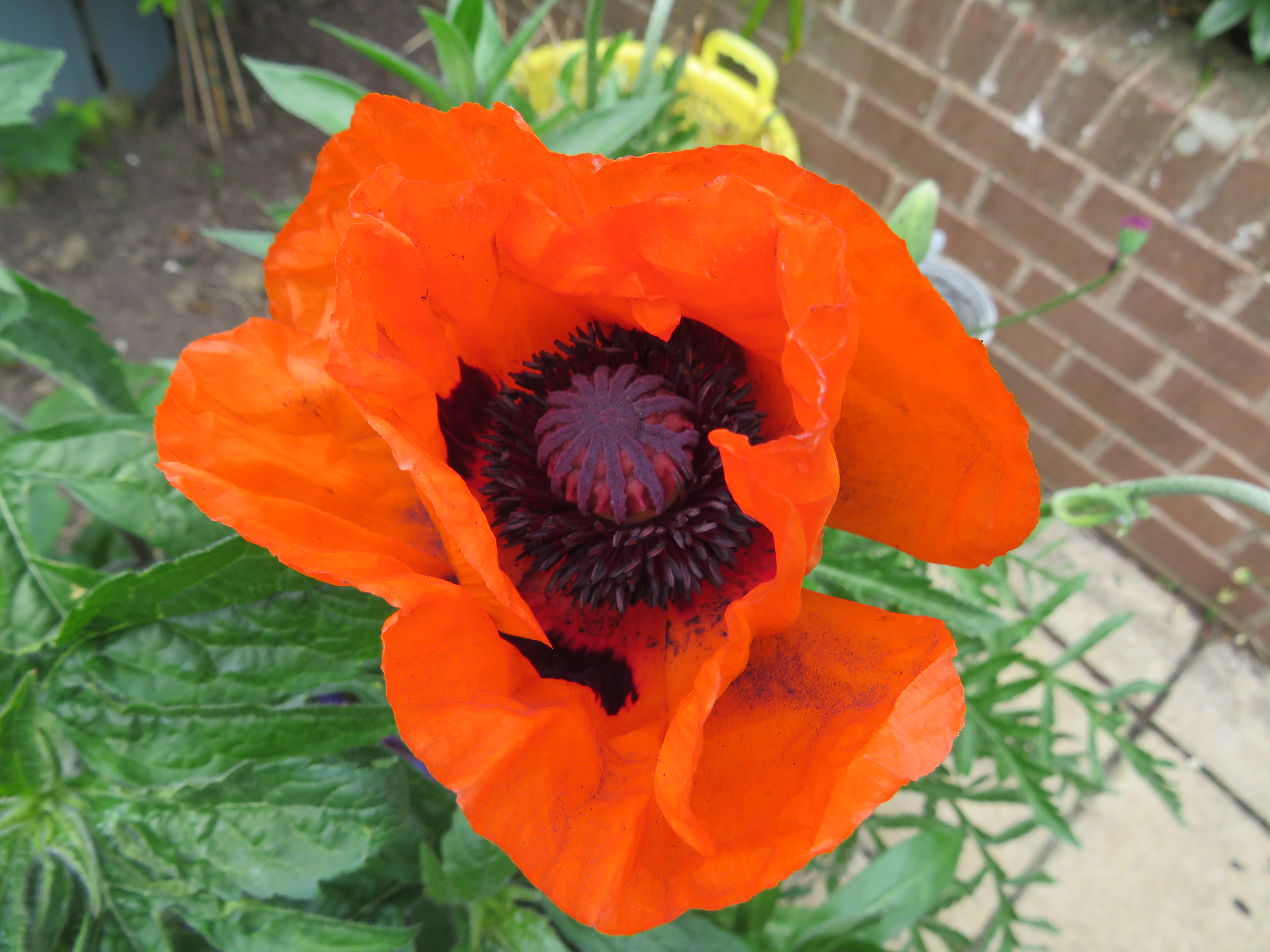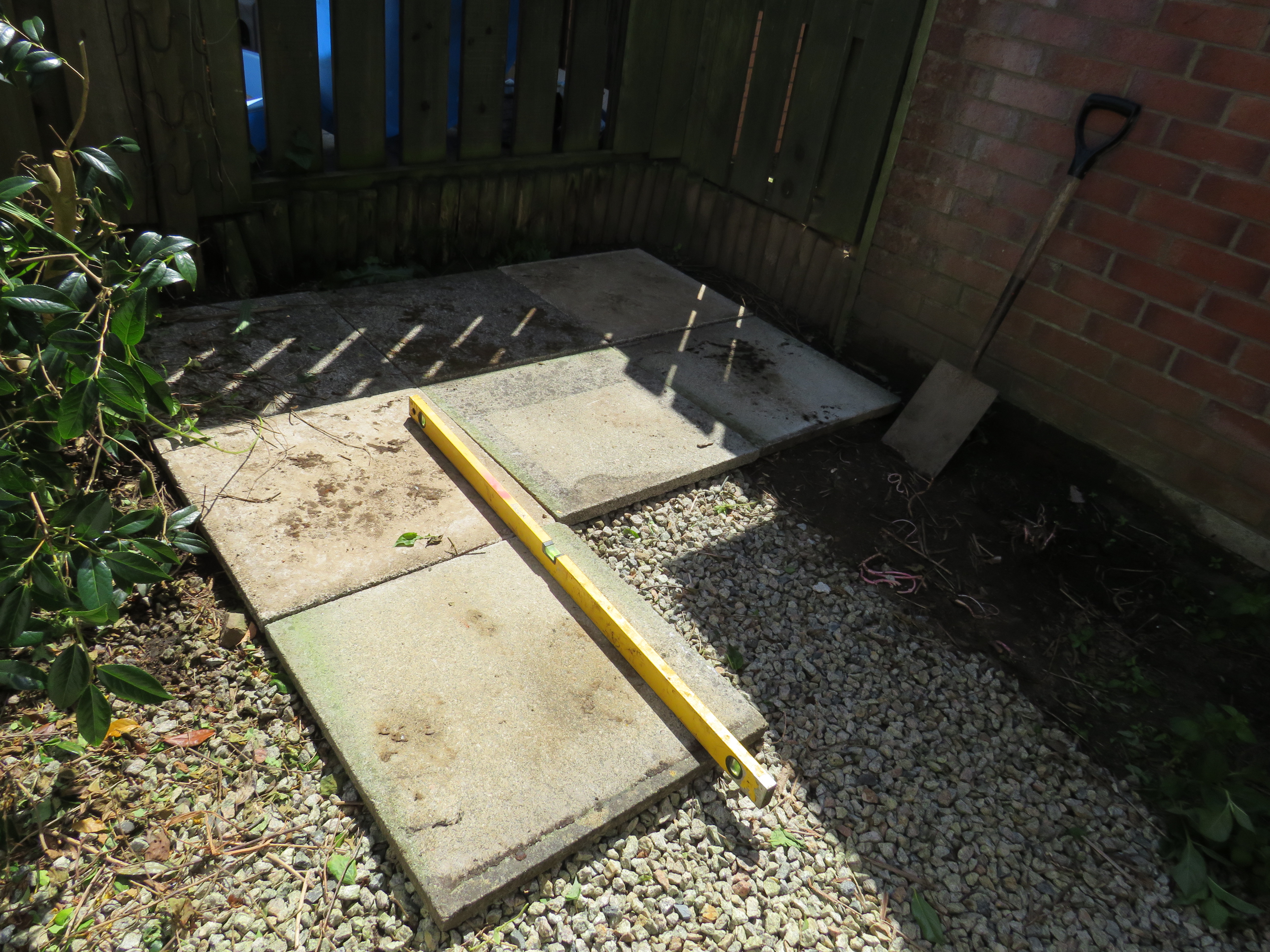 The other ‘big task’ – moving the once moved shed again, is also accomplished. This was necessary because it really was too wobbly. So it was back with the plastic rollers to pull it out of the corner in order to put down some large paving slabs before rolling it back. This all makes it sound remarkably simple. It wasn’t. The shed had to come forward and be shoved/rolled round a corner and back, ideally without one of use getting stuck behind it. While the corner was clear I took the opportunity to cut back whatever is going all along the side fence. This is a bed that is untouched so far. It seems to be something in the honeysuckle family but with much smaller flowers. The ends are leafy and flowery but underneath is a whole load of dead looking bush. Hacking away at it was not easy and my arms are tastefully decorated with scratches. Much as I hate digging up living things, I think the only way to deal with this bed will be to dig it all out. I will wait until the what ever it is has stopped flowering and then hope that it wasn’t holding the fence up. Reinstating the shed in the desired position has meant that I could at last put away things that have been lying around in the garden because it ‘wasn’t worth putting them away as the shed would need to me emptied’.