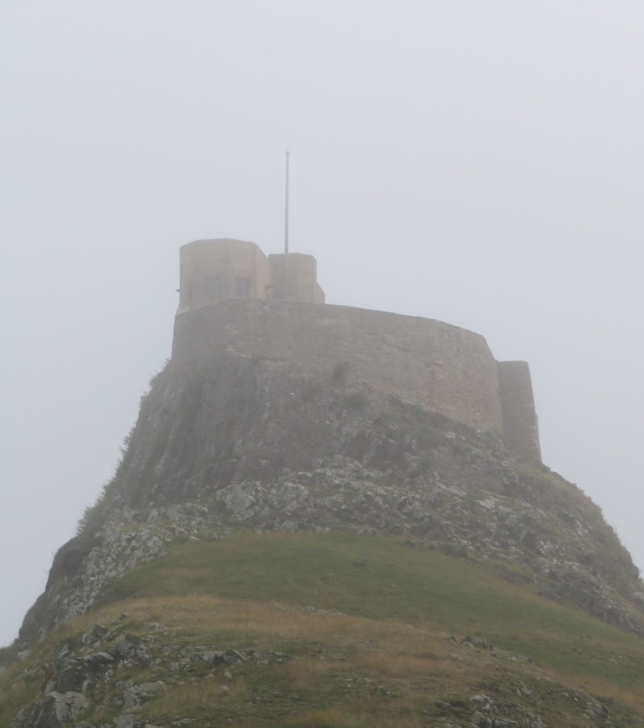 The next morning’s weather was not so much fog on the Tyne but fog across the whole of Northumberland. Undaunted, we set off to Lindisfarne admiring the hedges as we passed, which was about as far as we could see. We crossed the causeway to Holy Island just after it opened. We walked round the island past the old boats that have been upturned to use as sheds, then doubled back to walk toward the Castle. We had to get pretty close before you knew there was a castle and could see it looming through the mist. Built as a fort, the castle was converted into a holiday home by Edward Hudson, showcasing the work of Edward Lutyens as he did so. The garden was designed by Gertrude Jekyll. We had visited before and as one of our party was not in full health we decided to give climbing to the top to not see anything but fog a miss. We did look round the ruins of the priory and the accompanying exhibition.