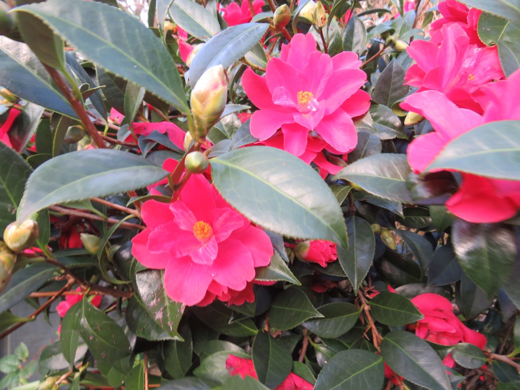 One good thing about this garden is that there is something in flower all the year round. At the moment, it is the Camellias that are the showstoppers, although there are a few other things as a supporting act. The lemon tree has been popped in the shed for the duration as advised. Roll on spring!