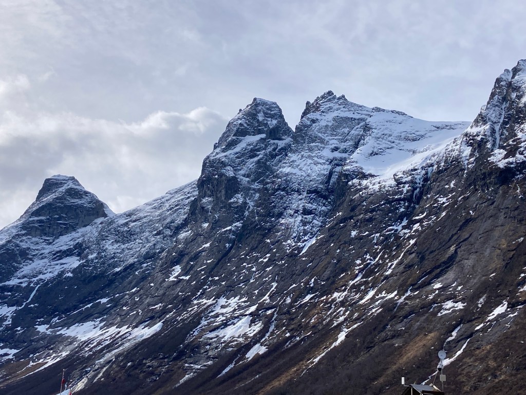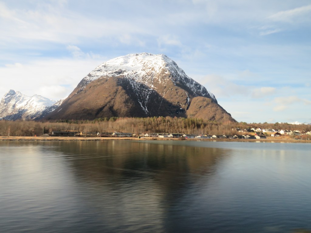 We are travelling up Romsdalsfjord as we wake up and soon, we anchor at Åndalsnes, surrounded by mountains. In April 1940, British troops landed here and 160 buildings were destroyed during the bombing raids. Twenty-six tons of Norwegian gold were shipped out of Oslo, via Åndalsnes, during the war, to be stored in Britain and then North America. Åndalsnes was the railway terminus. Now, the significant industry is furniture and textiles.